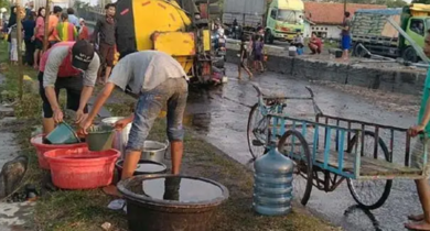Truk Sembako Terguling di Wiradesa Pekalongan, Warga Ramai Ambil Minyak Tumpah